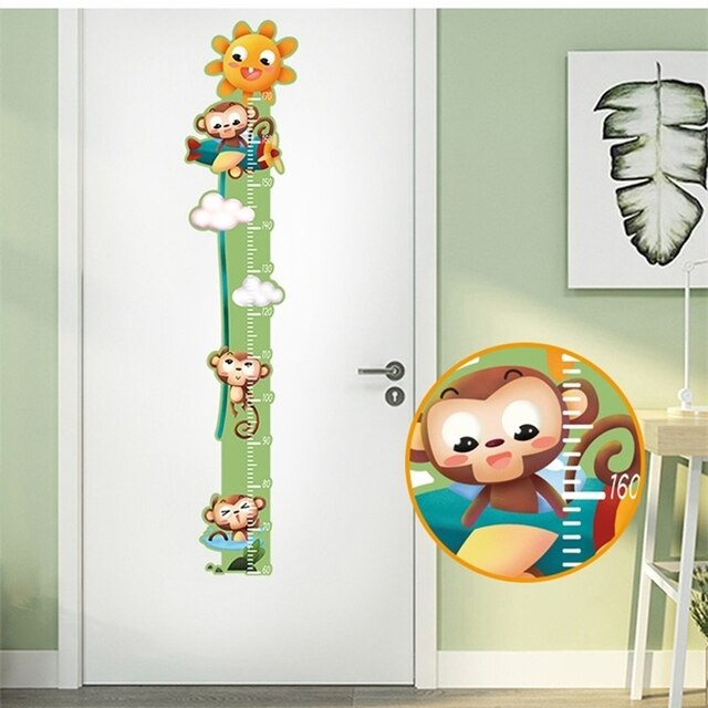 Animais dos desenhos animados altura medida adesivo de parede unicórnio dinossauro papel de parede para crianças quarto berçário criança crescimento régua gráfico quarto decoração
