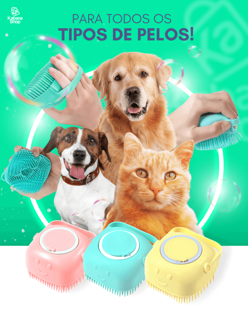 Perfeito para todo tipo de pelo, produto de silicone e cerdas massageadoras para Cães e Gatos.