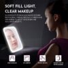 • 【Ajustável 3 cores levou luz natural suave】 o espelho de maquiagem é projetado com luzes naturais e suaves, contém 3 cores de luz (frio, quente, alternando frio e quente), o brilho pode ser ajustado na vontade, você pode escolher cores diferentes e as luzes do brilho de acordo com a composição diferente, o brilho são até 525ux, A claridade é mais alta do que o espelho ordinário da composição, pode fornecer uma imagem melhor. A superfície do nosso espelho de maquiagem é projetada com revestimento de alta qualidade, a alta definição do vidro é mais clara, o cuidado diário da pele é mais direcionado.