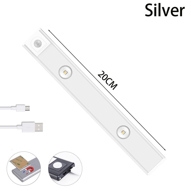 Diodo emissor de luz recarregável do sensor de movimento de usb para a iluminação 20cm/30cm/40cm para armário, guarda-roupa, cozinha etc… LEDs de alumínio