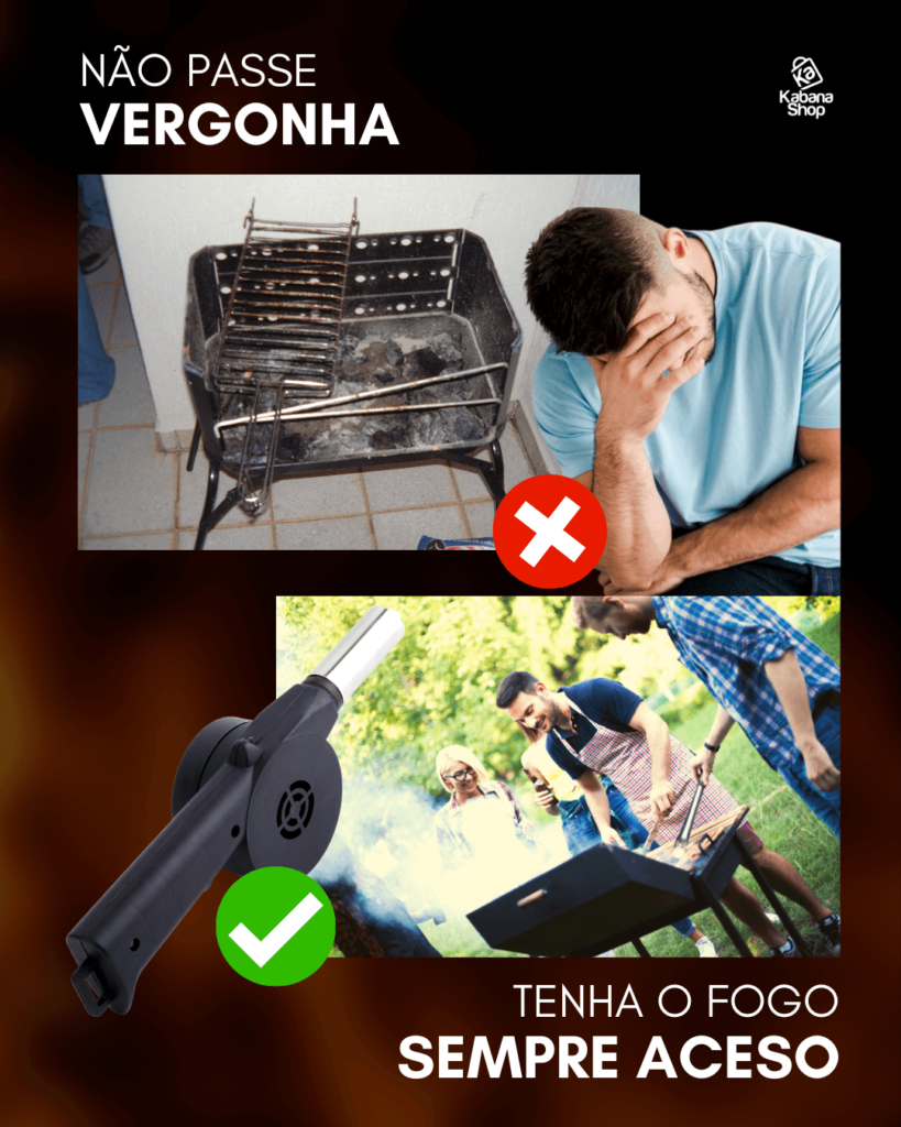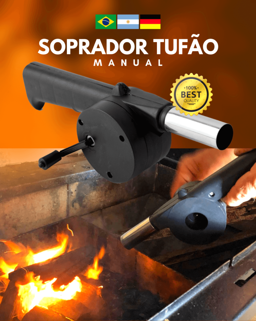O fogo da churrasqueira influencia diretamente no sabor de seu churrasco! Deixar a churrasqueira apagar enquanto a carne ainda não esta pronta pode acabar com seu churrasco e gerar aquele climão com os amigos, por isso o Soprador Tufão Manual é um dos utensílios essenciais para o seu churrasco, pois além de acelerar o processo de acender sua churrasqueira ele ainda te auxilia em todo o churrasco a manter o fogo acesso e alastrá-lo em todo o carvão. Ele é compacto para você levar onde for o churrasco da semana e fazer bonito no churrasco com os amigos.